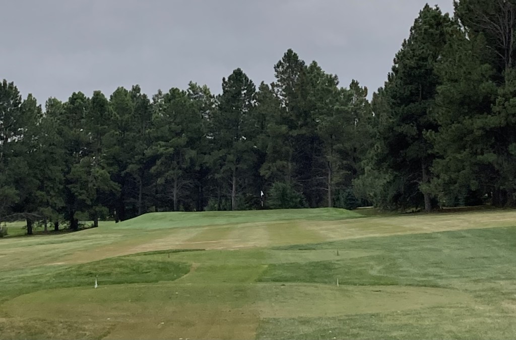 Seventeen: This part three wouldn’t look out of place at a Castle Pines muni. The green is nestled in among pine trees and drops off steeply to the left.