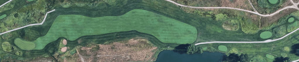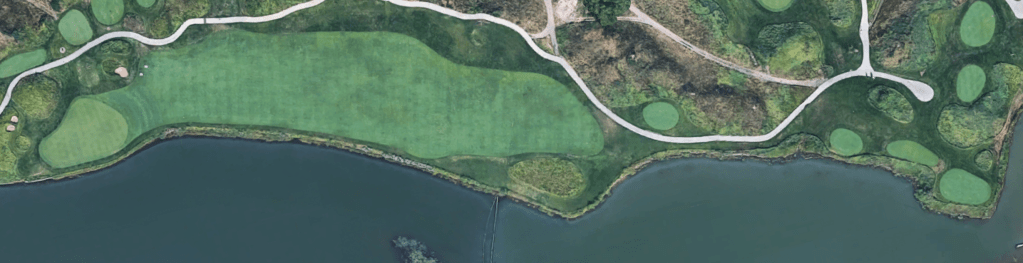 Seven: The seventh makes good use of a large lake down the left side. The fairway is wide enough to to bail out right, but the closer you can keep it to the water, the better your angle of approach will be. This is another great green which, “is built for a run-up shot, inspired by #12 at St. Andrews among others,” but also includes a hidden back pocket that makes for a fun but difficult approach.