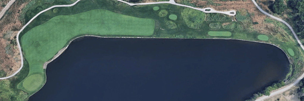From what I can tell, the fifteenth came to Colorado on vacation from Florida and never left. The Dyes’ signature railroad ties separate the fairway from the water from tee to hole. The play is off to the right in the sliver of fairway giving you a second shot over water to a green protected by dunes. If the wind is at all into your face, your best bet may be to lay up to the tee boxes on the right, get on in three, and two putt.