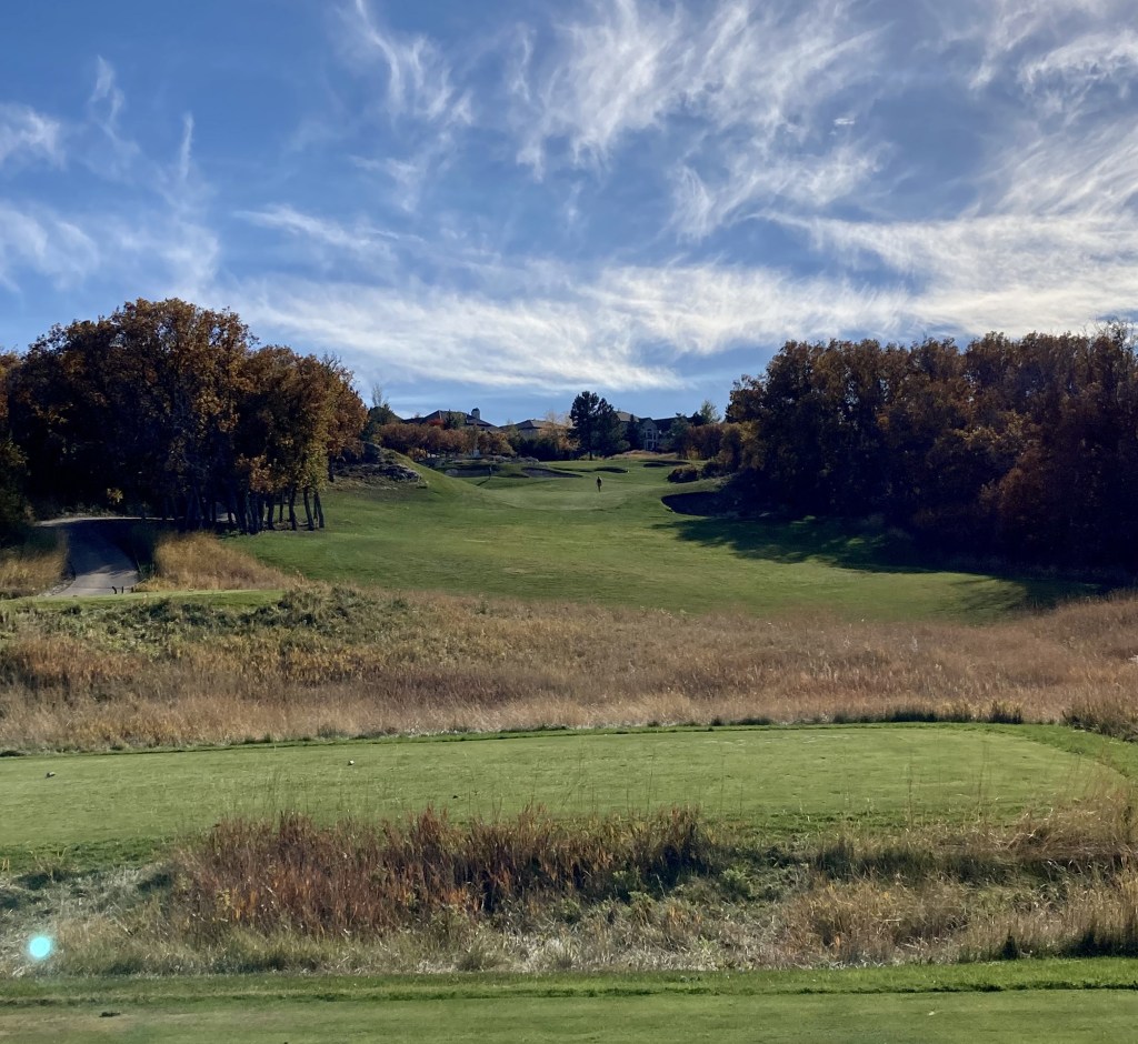 The City of Castle Pines’ northernmost golf course is a tale of two nines: one that weaves through a housing development and one that plays around a ridge of pines. I’ve seen criticism that the front nine is lackluster which I would emphatically disagree with. From the get go, the course introduces you to the dramatic tee shots and strategy that you can expect going forward. As much as I prefer to walk, it becomes immediately obvious why carts are required. The elevation changes tee to green and between holes would severely hobble anyone who attempted to hoof it. In what is admittedly a strange criticism, six through eighteen are so pretty and interesting that they do somewhat drown out the first five.