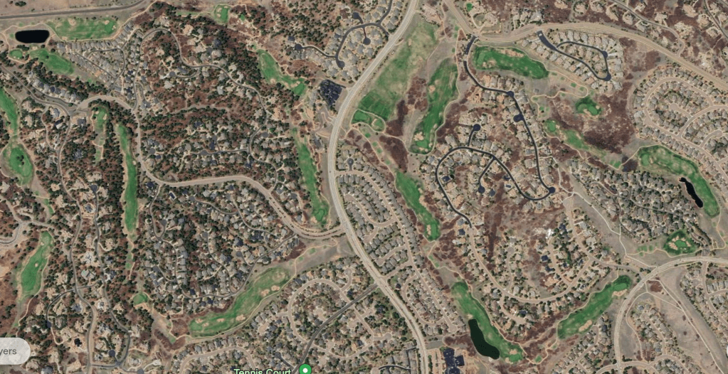 Despite its cost, La Cresta is undoubtedly the most affordable golf in the neighborhood. The Country Club at Castle Pines and Castle Pines Golf Club are both Jack Nicklaus designs due south of the ridge, one of which long held the PGA Tour’s The International and plays occasional host to the BMW Championship; the other of which did not. The uber exclusive Sanctuary had the good sense not to name itself The Castle Pines Club, valiantly breaking with convention. The first reader who sends me a mental trick to telling these two clubs apart wins a free sense of superiority.