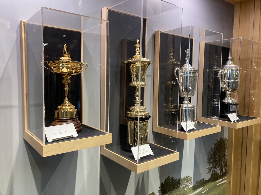 The property at Hazeltine is massive. Half of it contains the golf course and practice areas while the other half is wide open space, perfect for the concessions, media, and VIP tents that inevitably come with any high profile golf tournament. Beginning in the locker room, guests are offered the Ryder Cupper’s lockers with names still attached. The aura of golfing history is pervasive. The hallway between the pro shop and lockers is a museum chronicling each major with trophies, tournament used gear, scorecards, and writeups, all of which is the perfect introduction for your time in Chaska.