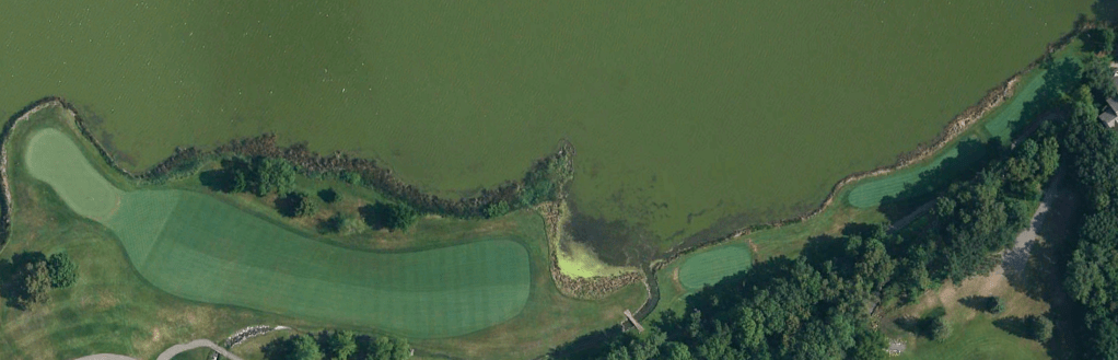 Six: All the best holes out here are doglegs and six might be the most sinister. From the tee are a heavy grove of trees left and another further down the right. The fairway itself is narrow and kicks left right about where you’d want to lay up. The green isn’t visible until the hole turns left at which point you see the pond that you should have known about before taking driver off the tee. It guards a skinny diagonal green with bunkers positioned behind to make a shot back toward the water a concern. At 405 from the back it’s not a long hole but makes up for it with every little trick in the bag. Don’t take my word for it – it was the 5th hardest hole at the 2002 PGA.