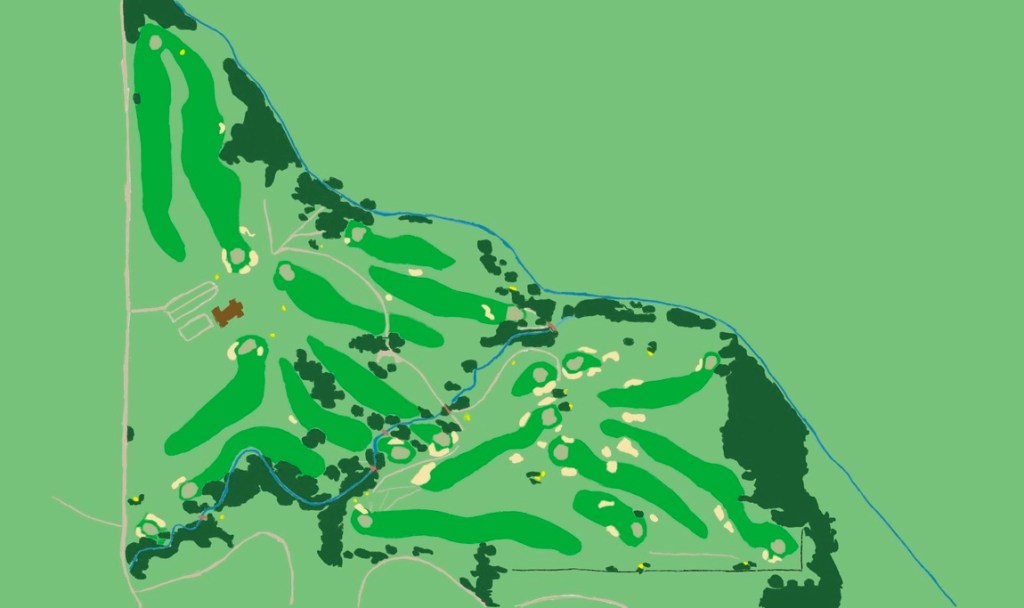Note: Many of the individual hole photographs come after tree planting and bunker removal and represent the beginning of Happy’s transition away from its original design.