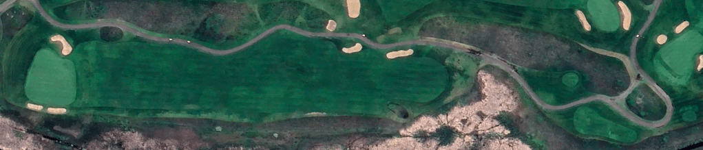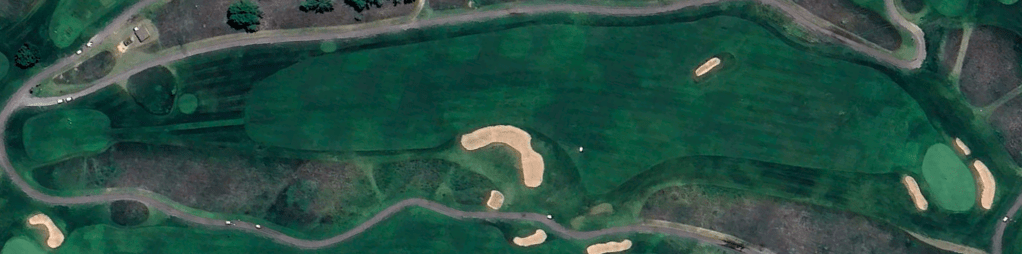 Thirteen: I adore the strategy on the thirteenth. Despite being a slight dogleg right, the ideal position isn’t to cut the corner even if it does leave you fractionally closer. The ideal play is to challenge the small bunker on the center left of the fairway which opens up a view at the angled green. If you do cut the corner, the approach is to the skinny part of the green which is pushed up and protected by one front bunker and two back bunkers.